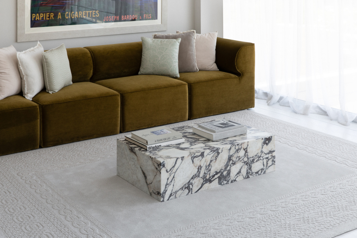 Kara is designed in a cozy beige tone and a rectangular shape, reminiscent of intricately knitted sweaters. It features unique techniques such as cut-and-loop textures and varying pile heights, creating a three-dimensional woven masterpiece for the floor.