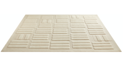 Repetition of similar yet distinct forms imbue this carpet with a sense of capricious irregularity. Sound draws inspiration from a construction technique called ‘pisé’ wherein raw materials such as straw and earth are compacted together to produce building blocks.